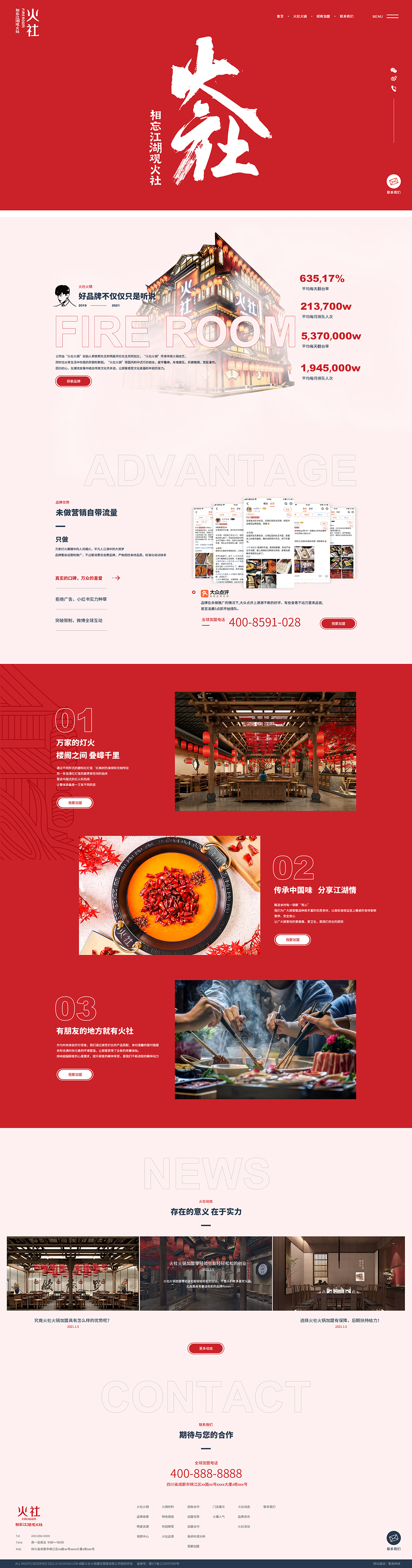 隨著火社火鍋的知名度及行業品牌影響力的逐漸擴大,許多用戶急切想要了解更多火社火鍋品牌的相關信息,而火社品牌方也需要一個能全面展現品牌理念、品牌發展、品牌加盟的官方平臺。