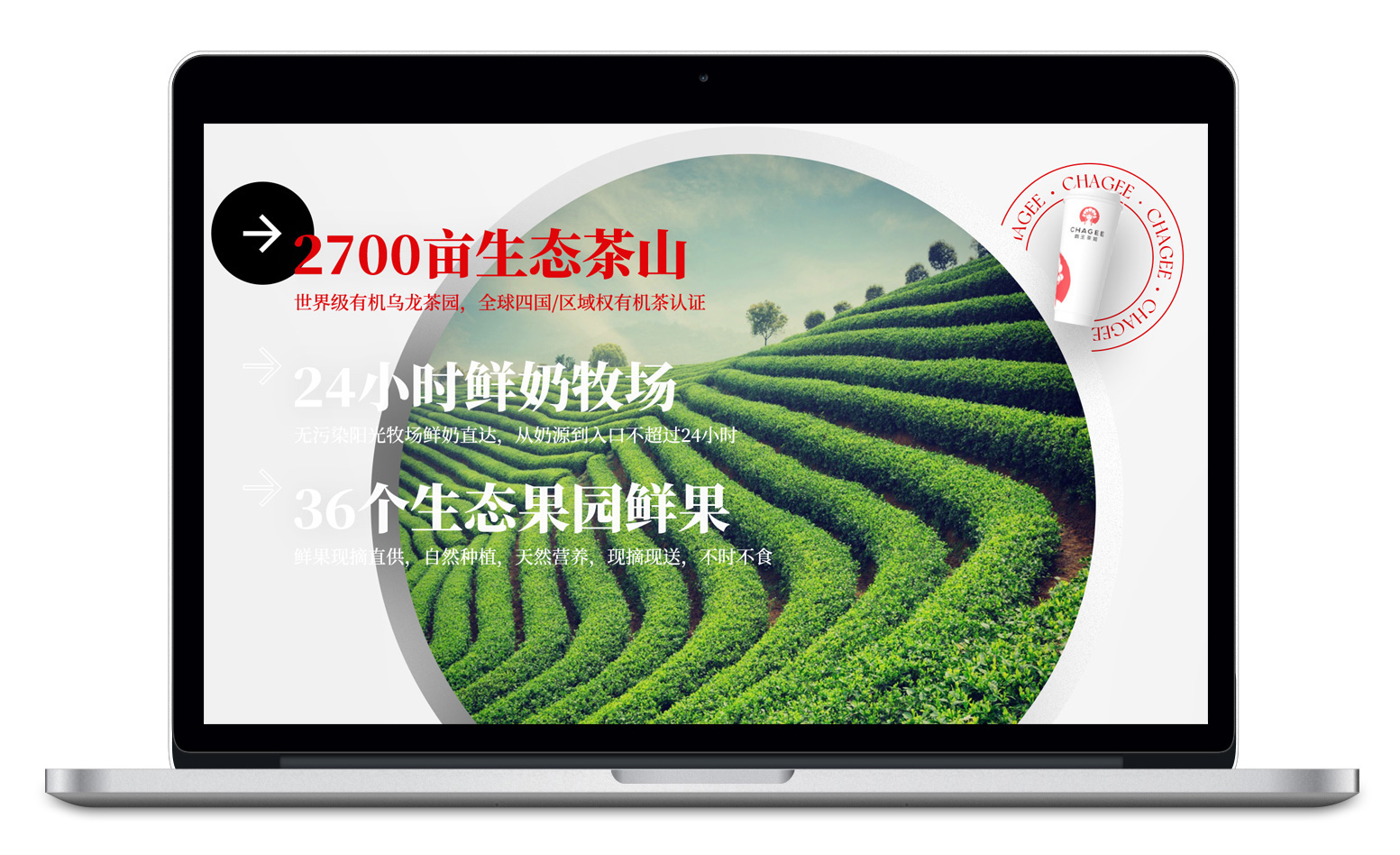 根據霸王茶姬本身產品素材尺寸以寬屏為主的特點,蜀美在該頁面摒棄了傳統的垂直式瀏覽模式而采用水平體驗的方式,力求更加完美的展現霸王茶姬的產品。
